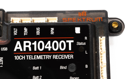 In addition to the integrated telemetry sensors, the AR10400T supports an expansive list of Spektrum telemetry sensors and 3rd party telemetry accessories. Easily add powerful telemetry data tools to your model such as GPS, Airspeed Sensors, Engine RPM and Turbine ECU telemetry from supported jet turbine controllers.