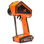 Molded Thermoplastic Polyurethane (TPU) bumpers surround the radio chassis to protect it against drops, bumps and even a few bangs here and there. There's no external antenna to snag or worry about—a low-profile ridge on the chassis protects the robust high-speed signal output internally. A versatile front chassis guard enhances durability further and provides mounting options for user-integrated accessories such as a camera, light source or anything else. The pair of lanyard mounting points gives drivers the ability to keep the transmitter close and gain a free hand when not driving. An easy-access accessory compartment makes it possible to can carry small tools, such as a T-wrench that smartly snaps into the internal mount provided. We increased transmitter water-resistance to give drivers peace of mind should there be an unexpected splash of water or some drops of rain. Last, but not least, is an aggressive off-road style steering wheel that expands its ruggedness even further, AND equipped it with an innovative thumb-lever to make controlling your vehicle with one-hand safer and more precise.