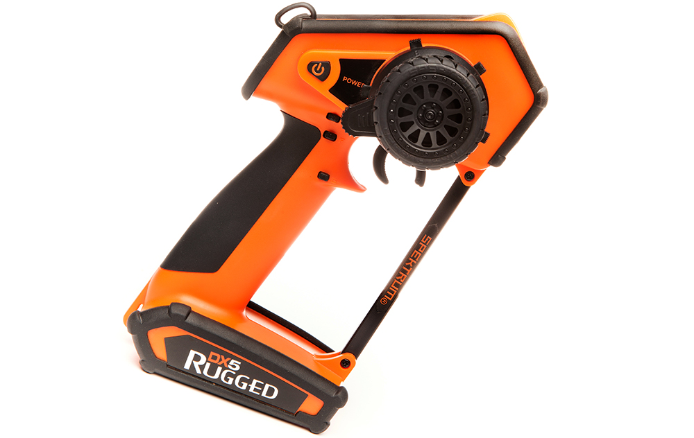 Your vehicles are extremely durable, why not your transmitter? The Spektrum™ DX5 Rugged™ 5-channel surface transmitter redefines radio control with a level of durability to match the tough conditions off-roaders, bashers and boaters encounter constantly. We started with a chassis based on the superb Spektrum ergonomic design found on the popular DX5C and competition favorite DX5 Pro. From there, we integrated cordless power tool feature ideas for the die-hard punishment those products endure. The result is a class-leading RC system with unmatched durability in addition to other innovative features that unite with a level of precision, versatility and convenience you won't want to play without.