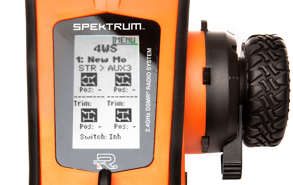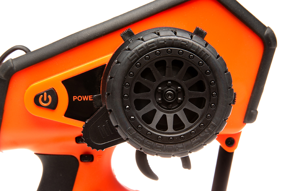 The aggressive off-road steering wheel tread helps the precision of Spektrum technology to also deliver a tactile feel even if you're crawling, bashing or boating in harsh conditions. The integrated thumb-lever innovatively makes it possible to steer one-handed safely and with a higher-level of precision.