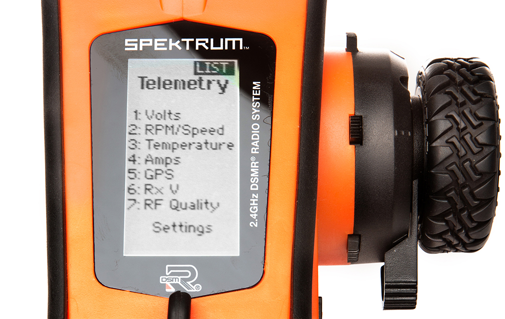 When combined with Spektrum Firma Smart ESCs and Spektrum Smart capable receivers, the DX5 Rugged receives telemetry data right to your transmitter through the Smart Throttle port on the receiver. Smart Throttle ESCs can send RPM, speed, ESC temp, volts and amp draw.