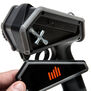 Molded Thermoplastic Polyurethane (TPU) bumpers surround the radio chassis to protect it against drops, bumps and even a few bangs here and there. There’s no external antenna to snag or worry about—a low-profile ridge on the chassis protects the robust high-speed signal output internally. A versatile front chassis guard enhances durability further and provides mounting options for user-integrated accessories such as a camera, light source or anything else. The pair of lanyard mounting points gives drivers the ability to keep the transmitter close and gain a free hand when not driving. An easy-access accessory compartment makes it possible to can carry small tools, such as a T-wrench that smartly snaps into the internal mount provided. We increased transmitter water-resistance to give drivers peace of mind should there be an unexpected splash of water or some drops of rain. Last, but not least, is an aggressive off-road style steering wheel that expands its ruggedness even further, AND equipped it with an innovative thumb-lever to make controlling your vehicle with one-hand safer and more precise.