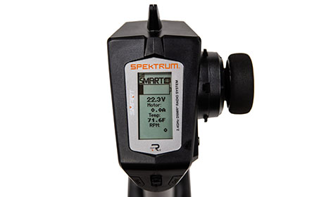 When combined with Spektrum Firma Smart ESCs and Spektrum Smart capable receivers, the DX5C receives telemetry data right to your transmitter through the Smart Throttle port on the receiver. Smart Throttle ESCs can send RPM, speed, ESC temp, volts and amp draw.