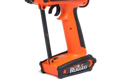 The DX6 Rugged stands out as a transmitter platform that means business handling the wildest terrain, the toughest conditions, and the fiercest competition without worry. That’s why we designed durability hand-in-hand with convenience. A built-in side compartment offers tool storage, and two lanyard mounts (one rubber, one molded into the chassis) are supplied so you can be hands-free instantly.