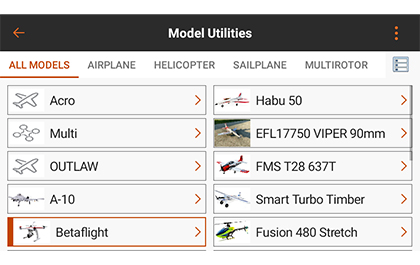 You can store 250 models straight to the iX14+ — and even more on internal memory or an SD card. The enormous capacity of the iX14+'s onboard Model Memory means your whole fleet can be conveniently stored all on one radio. With the security of Spektrum Model Match Technology, there are no worries about accidentally flying a model with the wrong settings. Simply choose the model you want to fly, power up the aircraft, and let your Spektrum iX14+ do the rest.