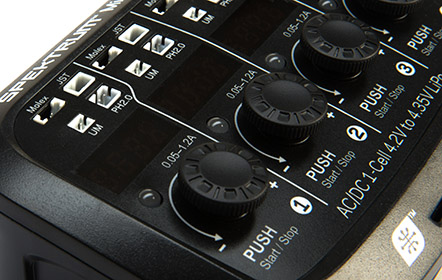 Each of the four charging channels is built-in with independent circuitry to enhance charge precision and efficiency. Vivid LED status lighting includes individual 4-digit displays and multi-color LEDs so you can instantly see the charge phase and battery condition. The simple press-dial interface allows you to finely tune the charge rates from 0.05 to 1.2A making it possible to fast-charge most high rated batteries. Exclusive software detects LiPo and LiHV 1S batteries automatically and combines with Spektrum Smart Charging technology so your batteries get maximum protection against short circuit, over current, reverse polarity and input voltage errors.