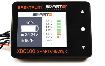 The Spektrum XBC100 Smart Battery Checker is a must have tool for any pilot or drivers pit box. More than a battery checker, it features a built-in cell balancer, integrated servo tester and driver, and Spektrum Smart battery connectivity