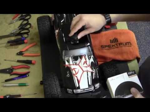 Presented to you is a Simple to Follow video on how to install the Spektrum VA2510 Camera on a Surface vehicle with only 2 channels. Utilizing a Servo Y harness, we acquire power off the Steering channel. And we attach it to the Body of the model with double sided tape. Along with the install we provide a tutorial on how to change channels using the button on the back and how to Focus the FPV camera.